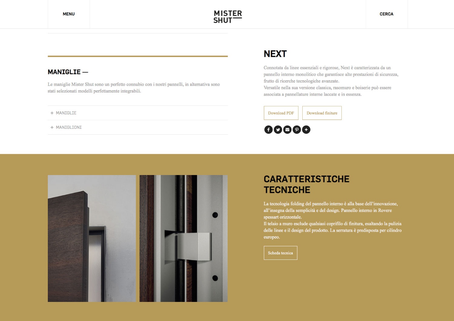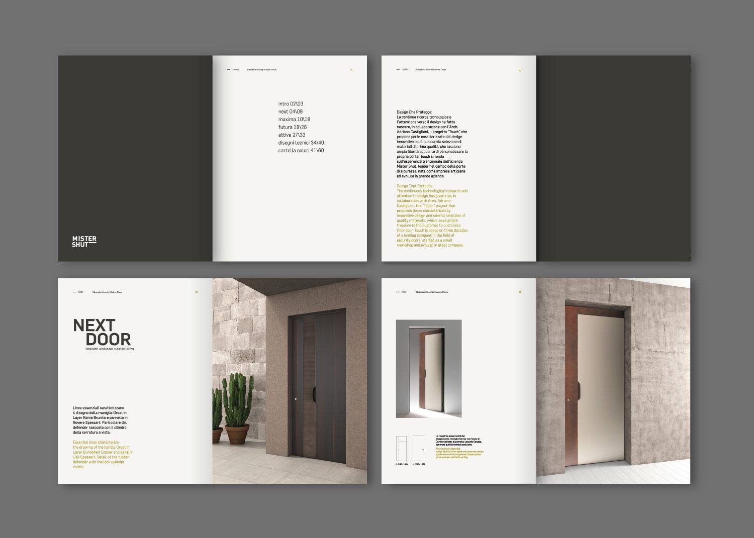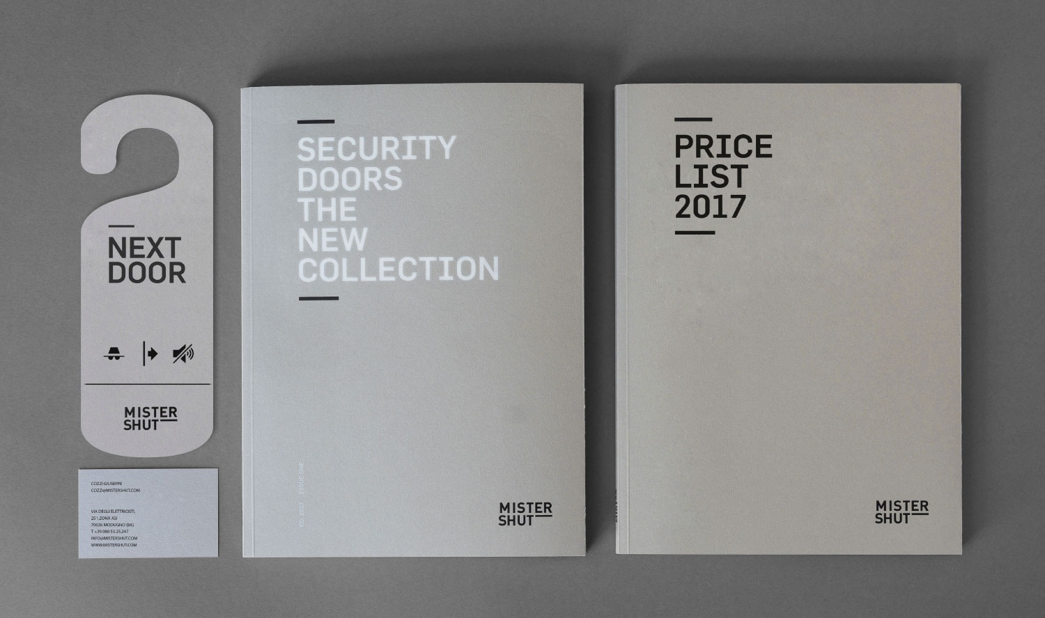 Mr. Shut, Porte Blindate. Direzione artistica generale. Disegno del logo, cataloghi, scelta del materiali, disegno icone, packaging. Rendering. Progettazione e art direction user interface user experience del nuovo sito. Coordinamento stampa e programmazione
