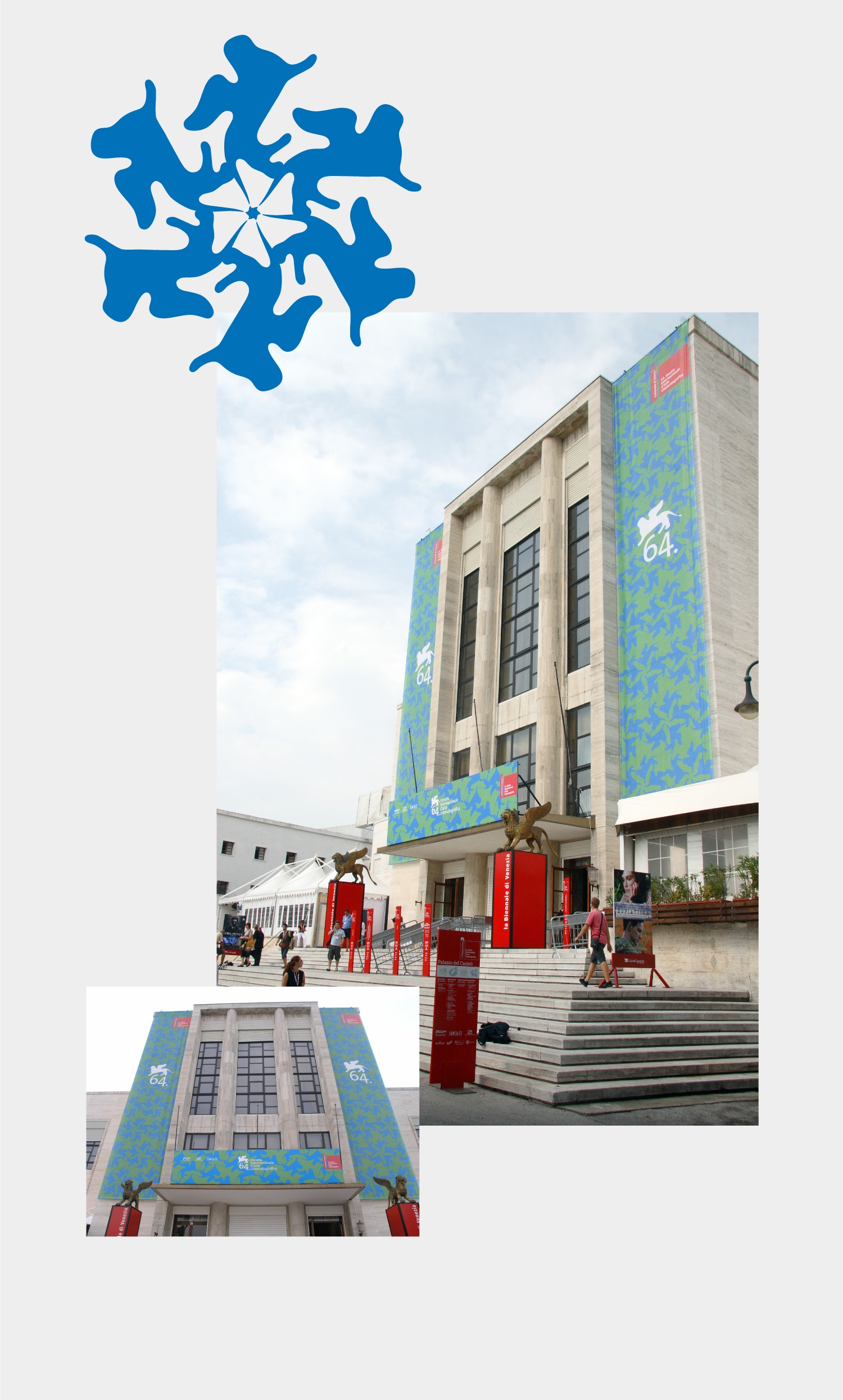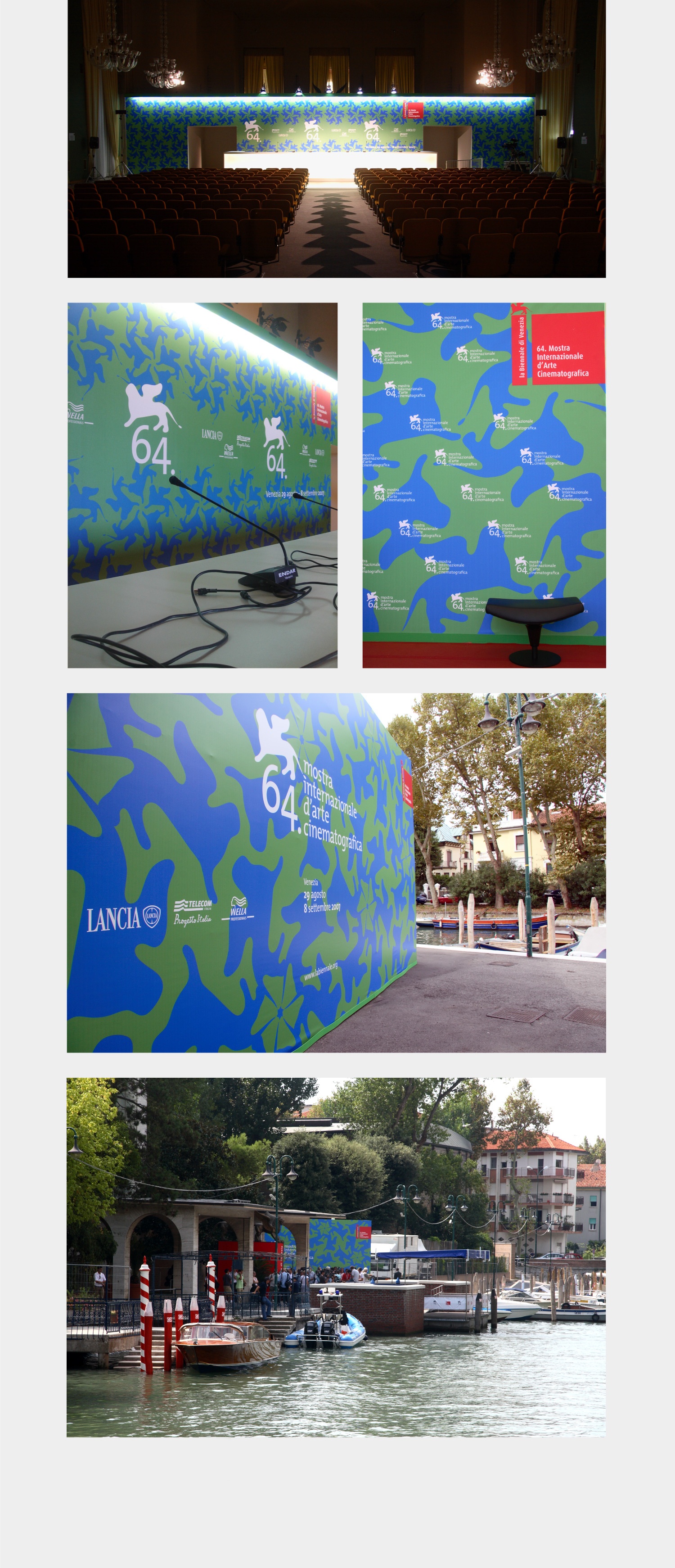 La Biennale di Venezia. 64 Mostra Internazionale d'Arte Cinematografica. Progetto realizzato per Lissoni & Partners Lissoni Graphx Milano: coordinamento generale dell'allestimento del palazzo del cinema e di tutti gli edifici collegati ad esso, Lido di Venezia. Archigrafie, wayfinding e tutta la comunicazione cartacea dell'evento della Mostra internazionale d'arte cinematografica della Biennale di Venezia delle manifestazioni degli anni 2007/08/09.